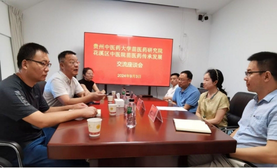近日,yl8cc永利官网党委委员、苗医药研究院副院长胡成刚带领贵州苗医药博物馆何席呈、魏志丹、刘晓龙、冯玲等到访贵阳花溪区中医院开展“苗医药传承发展交流座谈会”。花溪区中医院党委书记叶凌,党委副书记、院长杨群英,副院长祖鹏、赵阳,及相关科室主任、学科带头人参加此次座谈。