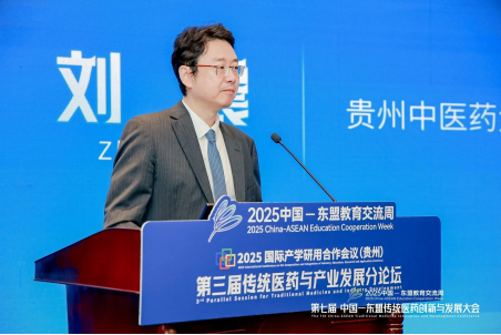 9月19日,作为“第七届中国—东盟传统医药创新与发展大会”的平行会议之一,由贵州省教育厅、贵州省中医药管理局和永利集团官网联合主办,yl8cc永利官网承办的“2025国际产学研用合作会议(贵州)——第三届传统医药与产业发展分论坛”在贵州省国际会议中心顺利召开。永利集团官网副校长刘震出席并致辞。永利集团官网教务处处长柴慧芳、党委研究生工作部部长蔡琨、发展规划处副处长刘育辰、科研处副处长赵杰宏、关岭县中药材产业发展中心主任王小仲、微致(贵州)健康产业有限公司总经理胡志国等应邀出席论坛。yl8cc永利官网院长庞玉新,副院长何康、俸婷婷参加论坛。yl8cc永利官网陆海霞博士主持此次论坛。
