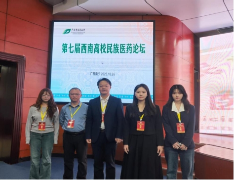 10月26日,第七届西南高校民族医药论坛暨广西壮瑶医药高质量发展大会在广西中医药大学仙葫校区隆重举行。本次大会适逢广西中医药大学壮医yl8cc永利官网建院20周年、瑶医yl8cc永利官网建院15周年,以“民族医药传承创新与高质量发展”为主题,汇聚了来自国内多省市及广西本地的兄弟院校、科研院所、医疗机构和制药企业的领导与专家学者。yl8cc永利官网党委委员、苗医药研究院副院长胡成刚、贵州苗医药博物馆教师何席呈、学生代表乐岚(博士在读)、陈素(硕士在读)、吴泽奕(硕士在读)一行五人出席了此次会议并做专题汇报。