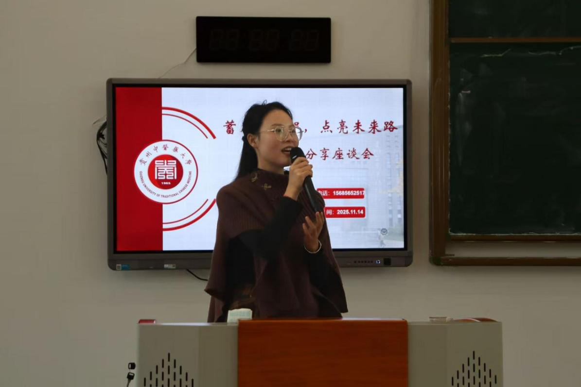 11月14日,“药梦起航 职引未来”毕业生就业能力提升工程(第五期)在国合楼2-7教室顺利举办。本次活动邀请我们2025届中药资源与开发专业毕业生,现任贵州威门药业股份有限公司营销管培生的曾丹、黄云主讲,2022级、2023级、2025级中药资源与开发班,2022级中药学(1)班及2022级生物制药班学生参加了此次活动。